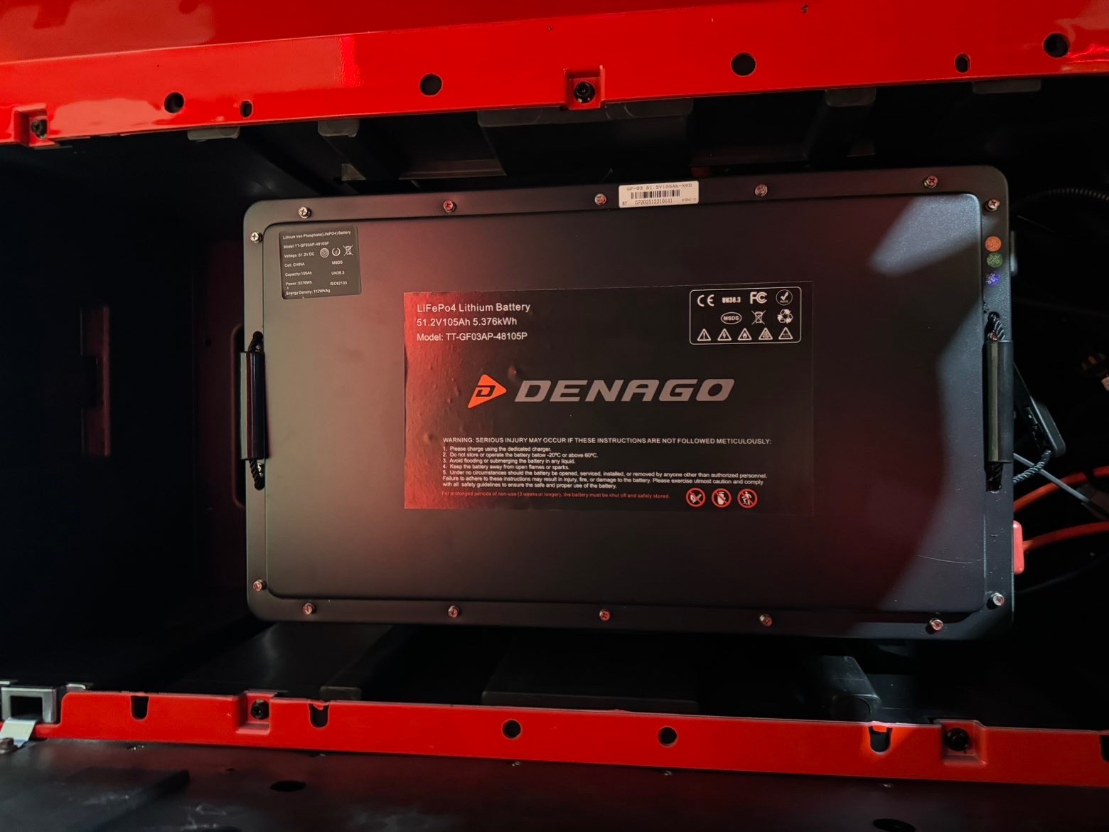 The 2025 Denago EV Nomad XL pairs a 5 kW AC Motor with a 51.2V 105Ah LiFePO4 Lithium Battery and delivers a city range of 40 miles per charge.