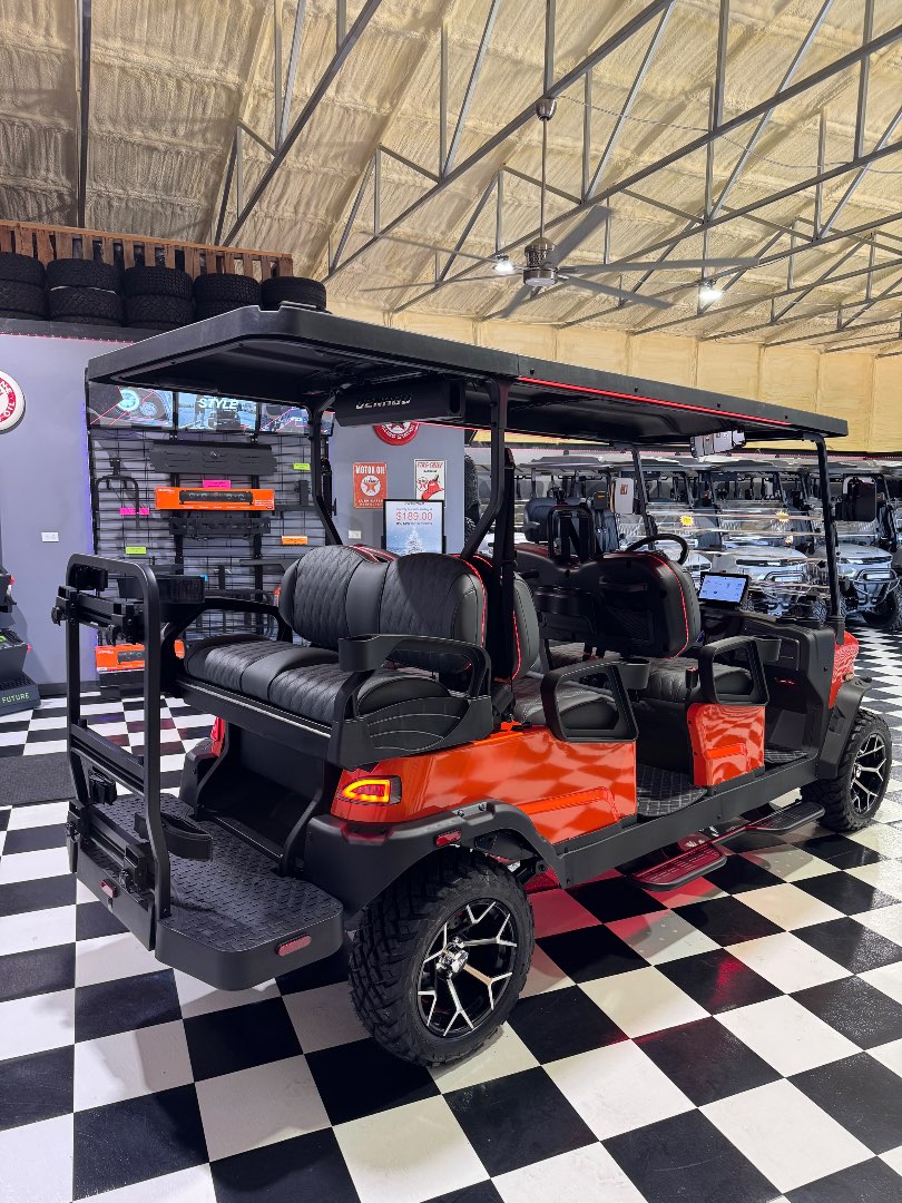 Built with a powder-coated aluminum chassis and a 2.5″ lift, the Rover XL6 combines utility, comfort, and modern tech in a 6-passenger package.