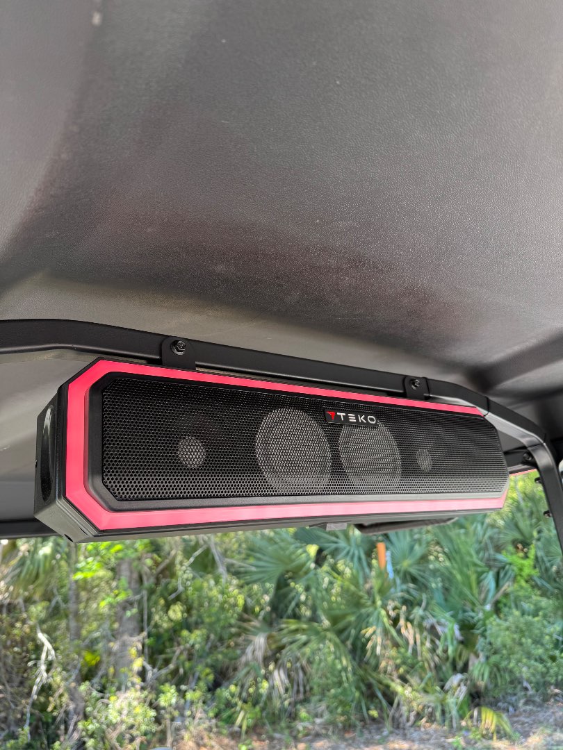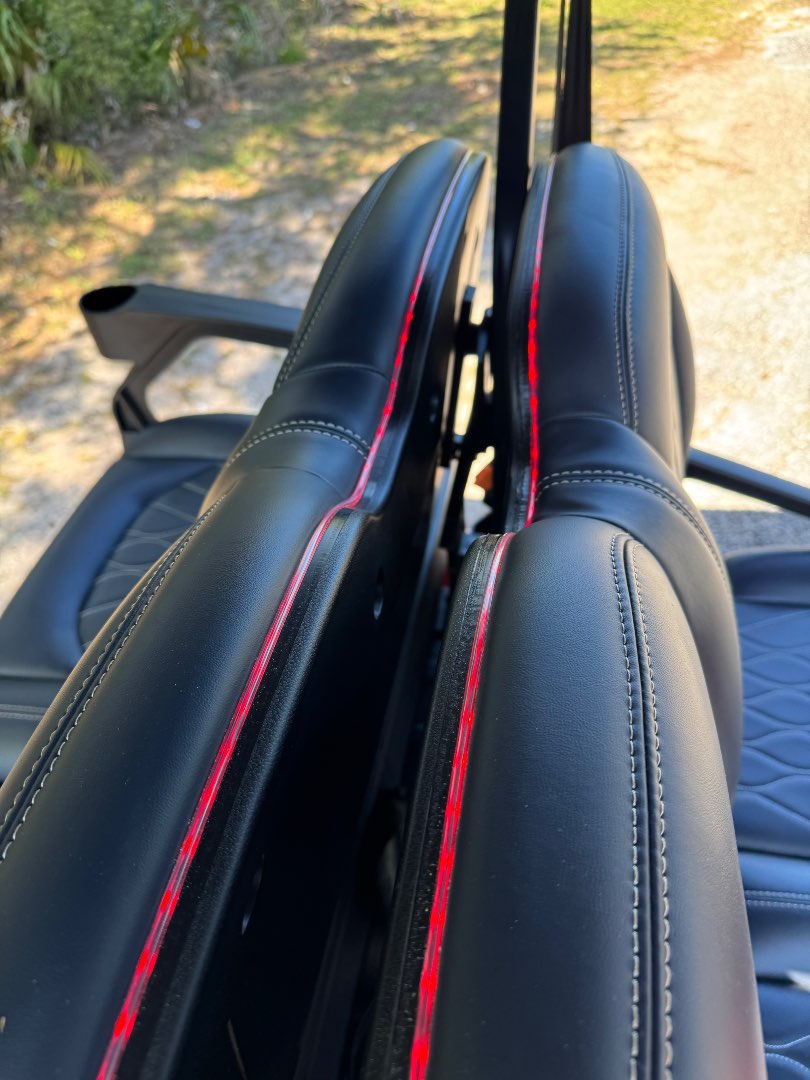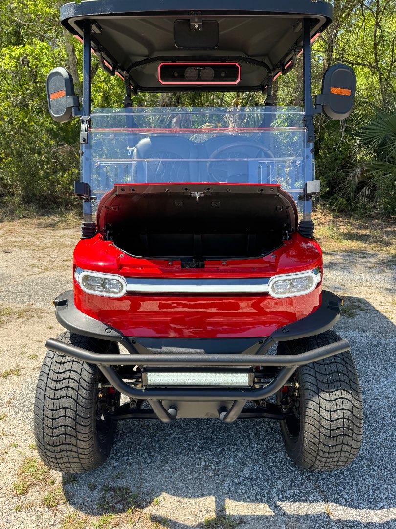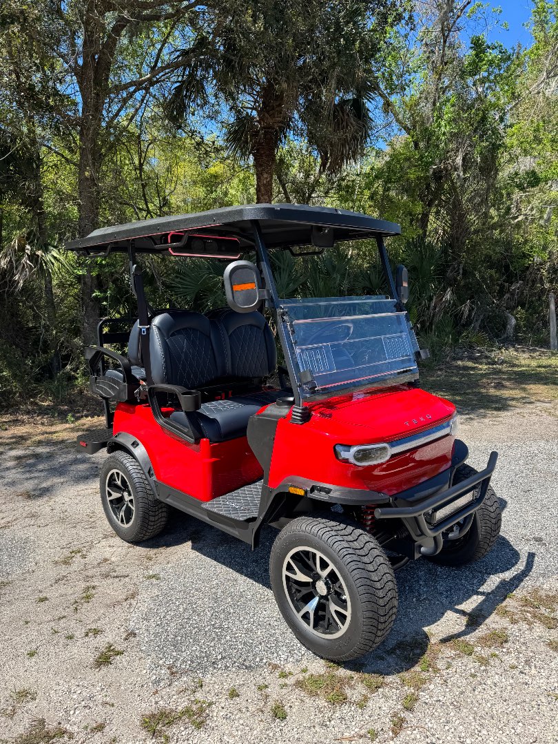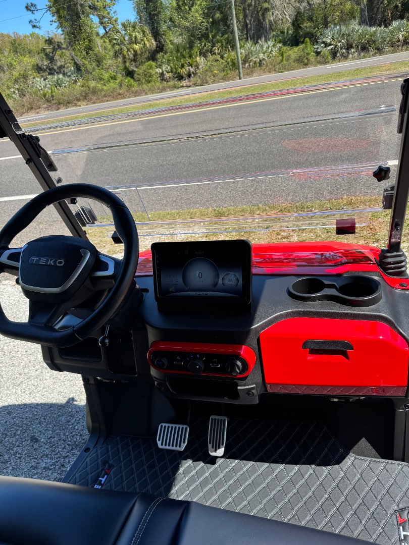 The TEKO Turbo is designed for both performance and comfort, featuring advanced safety and luxury amenities like a backup camera, Bluetooth audio, and ambient LED lighting, making it a top choice for electric golf carts.